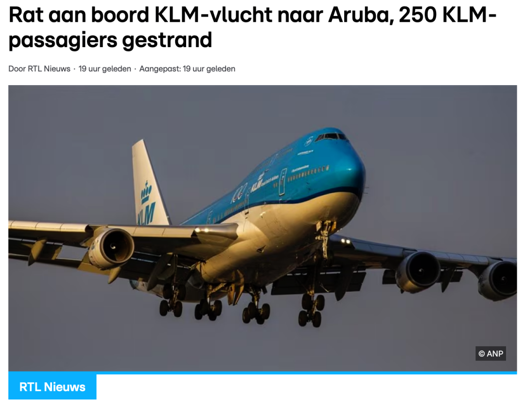 据rtl.nl报道,一架原定从阿姆斯特丹飞往阿鲁巴的KLM航班,途中突然发现机上有一只老鼠,导致250名旅客被困加勒比。KLM对这一消息予以证实,表示事件“非常罕见”,并强调乘客情绪总体保持稳定。