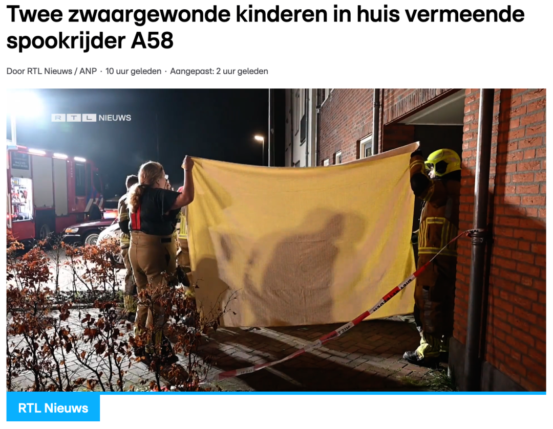 据rtl.nl报道,周六晚间,荷兰北布拉班特省莫赫斯特尔(Moergestel)发生一起性质极其严重的案件。警方在一户住宅内发现两名10岁以下儿童身中刀伤,情况危急,已紧急送往医院。