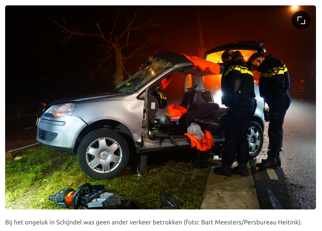 据nltimes.nl报道,在北布拉班特省Heeswijk-Dinther与Schijndel之间的Steeg公路,周日凌晨2点15分左右发生一起事故。一辆载有4名青少年的车辆在浓雾天气中偏离道路,侧向撞上路边一棵树。