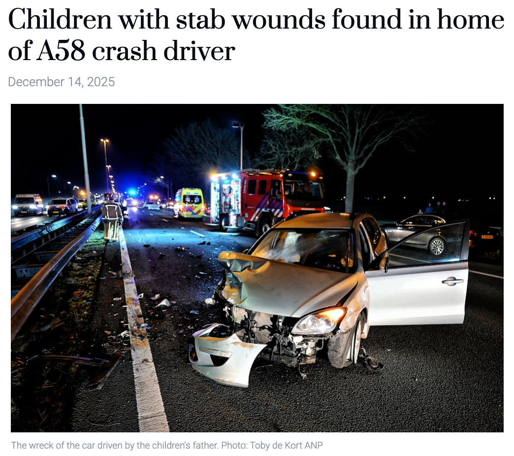 荷兰A58高速离奇事故:逆行司机冲撞多车,家中2名幼童遭刺伤;市中心车辆“飞入”面包店!阿姆音乐厅弥漫刺鼻怪味…