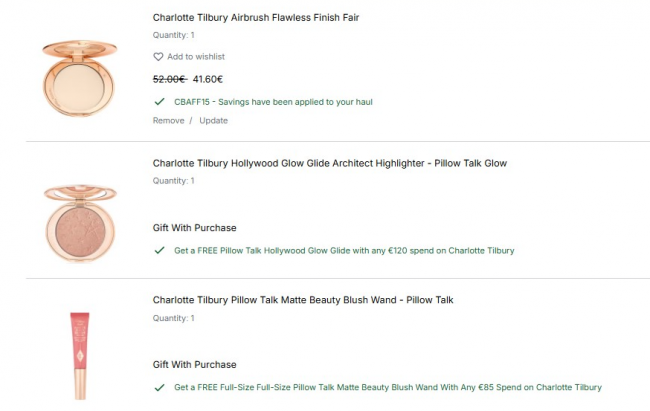 🎁 品牌满85€送正装腮红液#Pillow Talk1支!满120€加赠正装高光腮红1个!